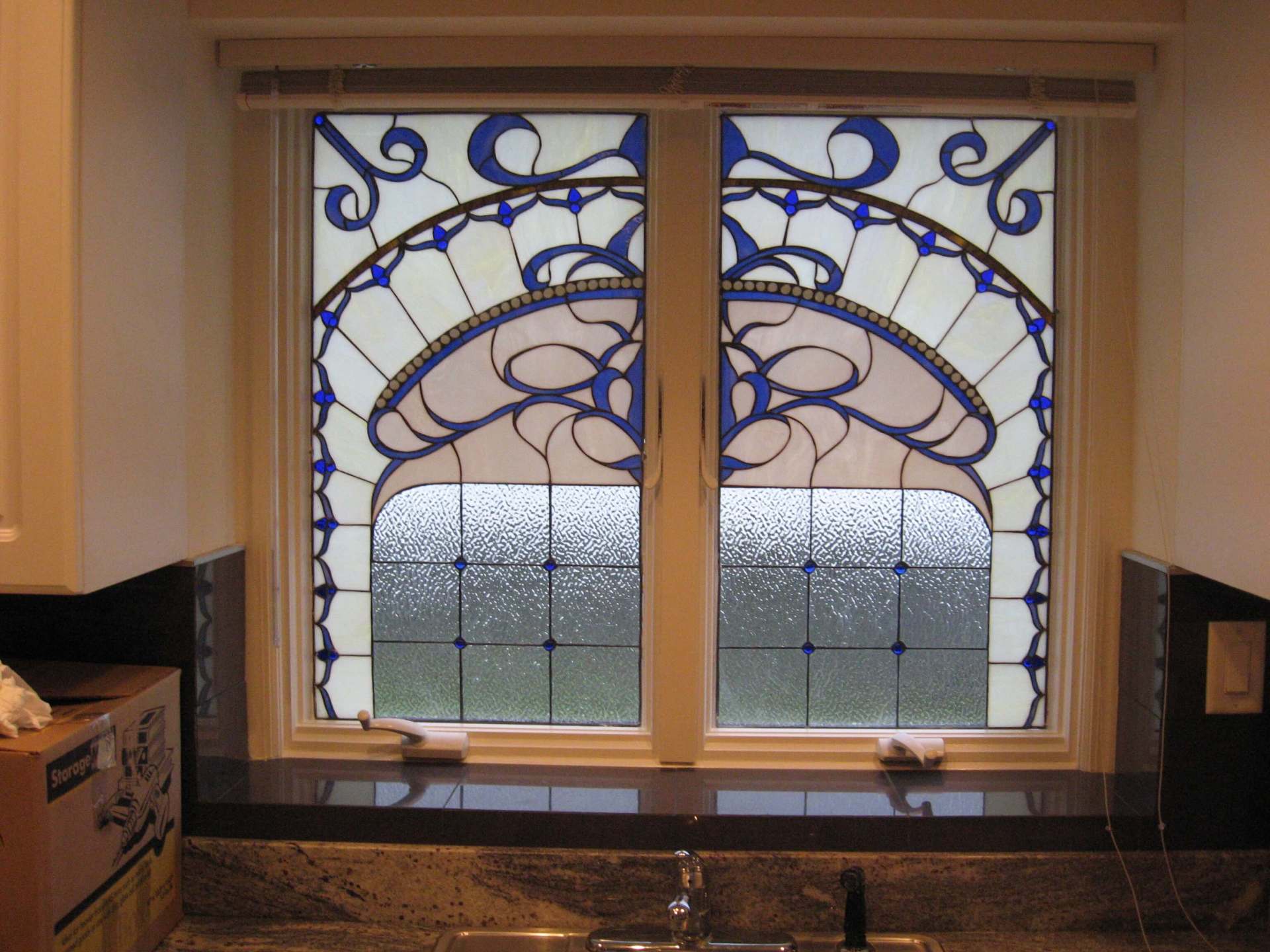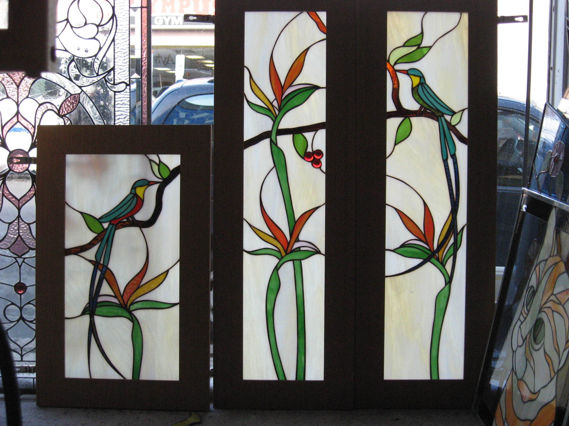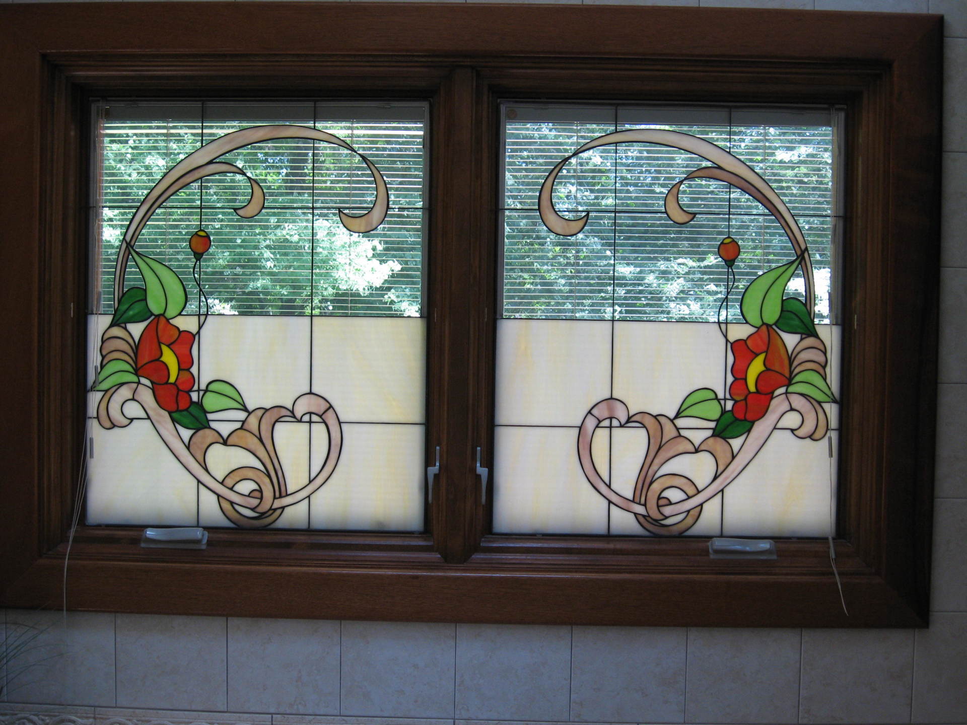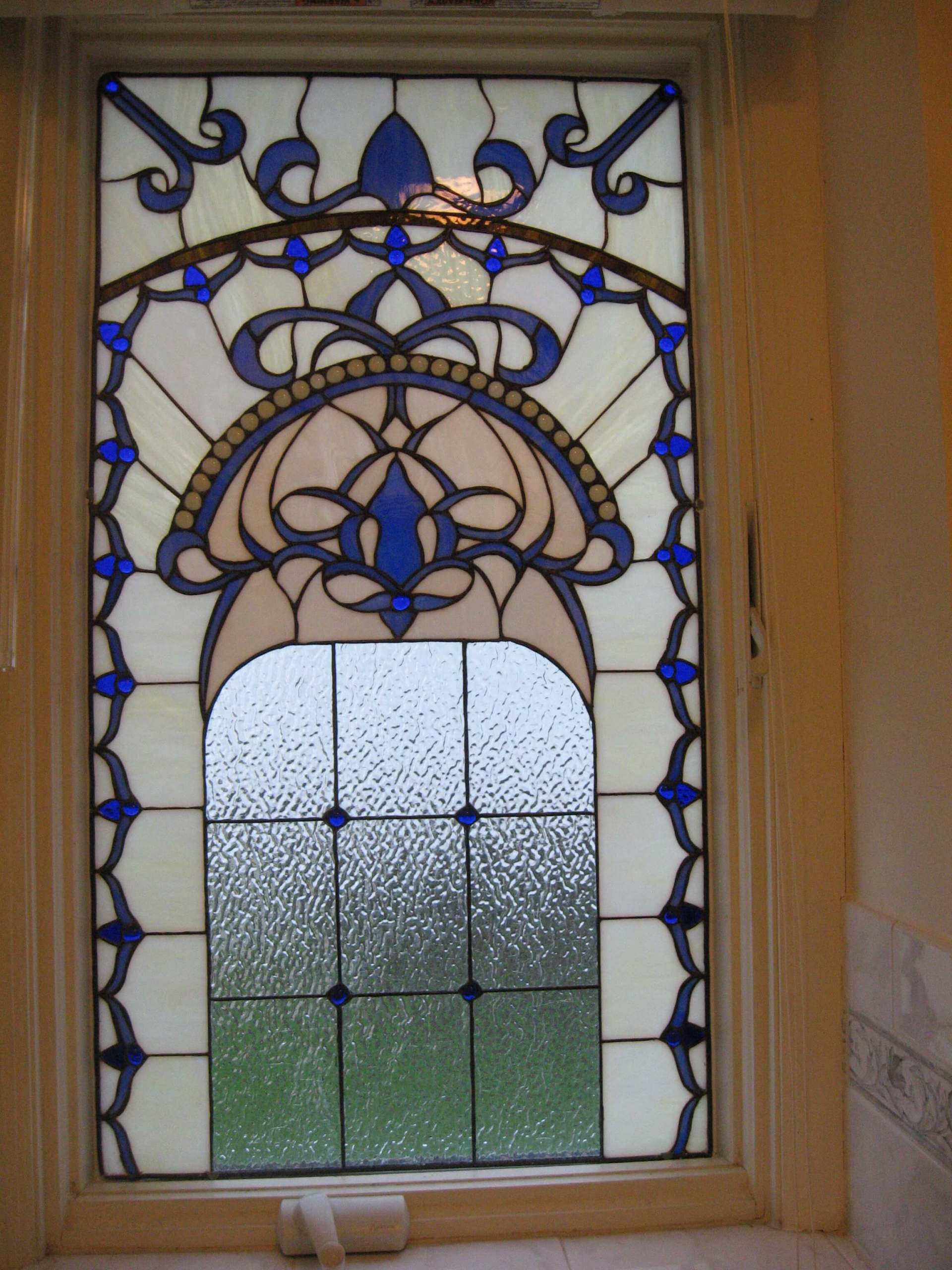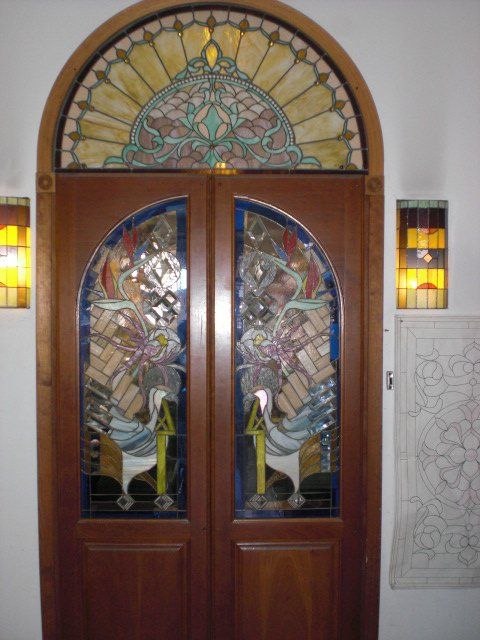 Pictured here are several examples of residential stained glass pieces that have been made by our studio. Each piece is especially custom designed for each individual customer. We have hundreds of designs in our library and we can re-create any of these or create a custom artwork based on your specifications.