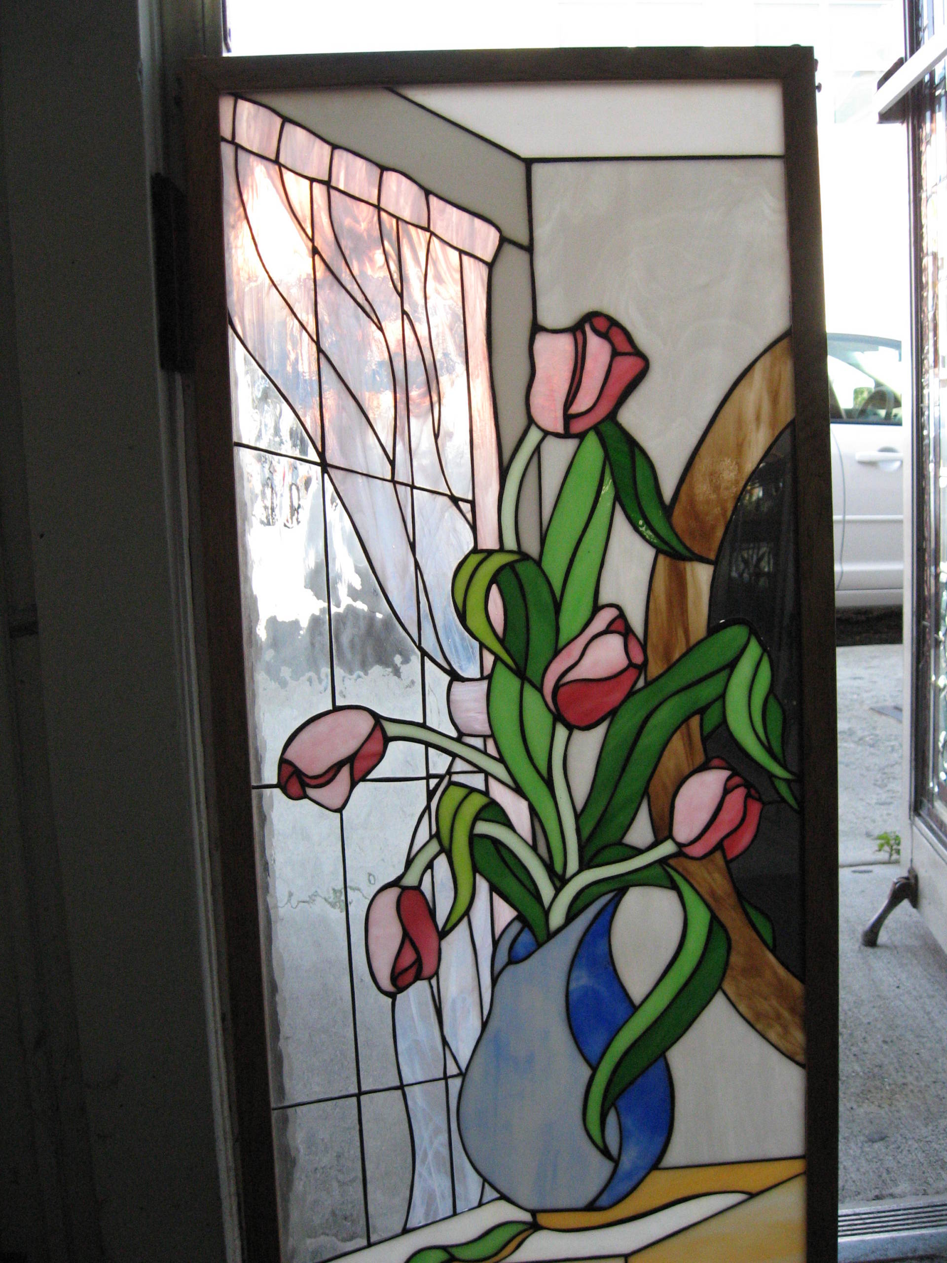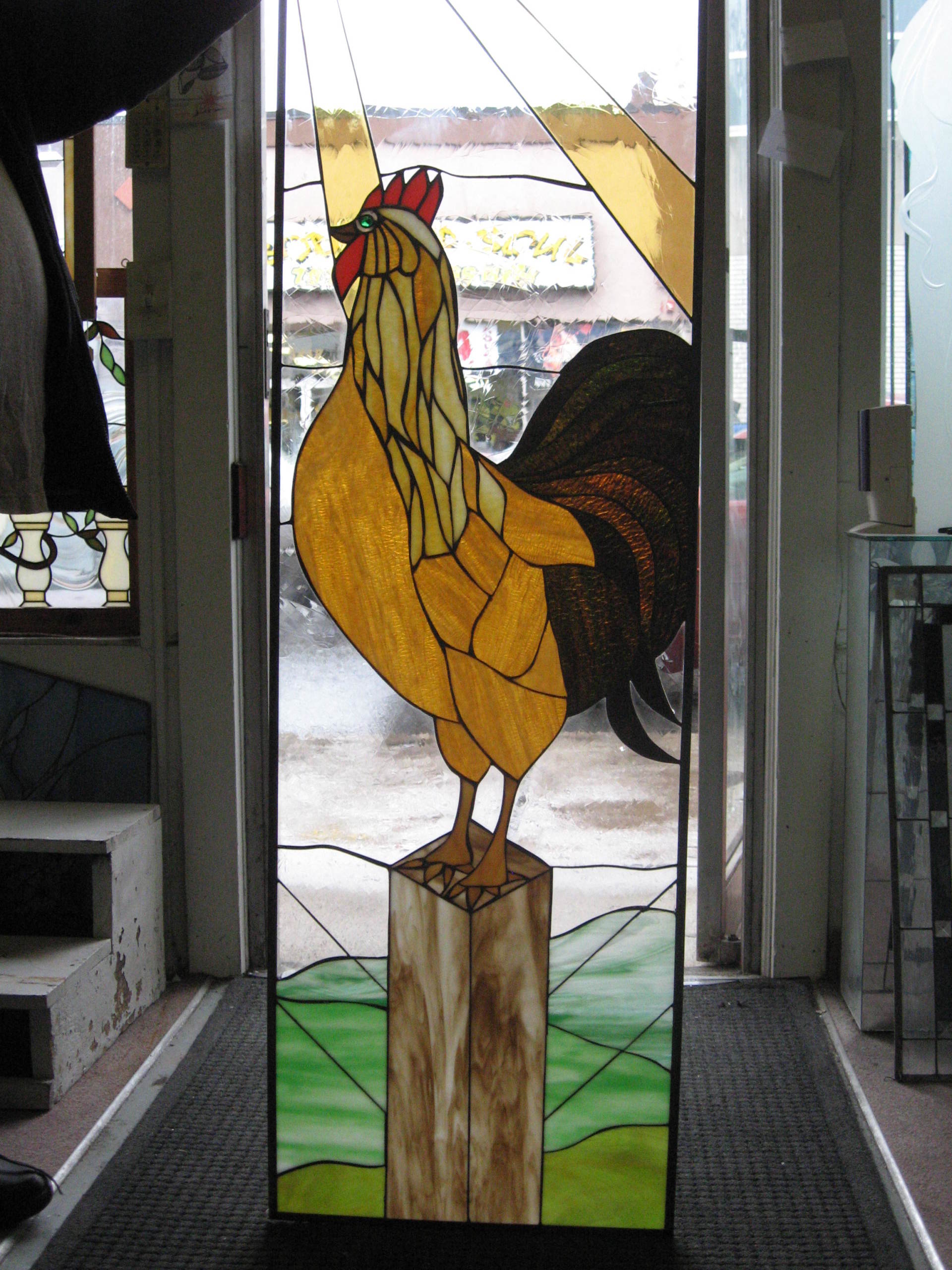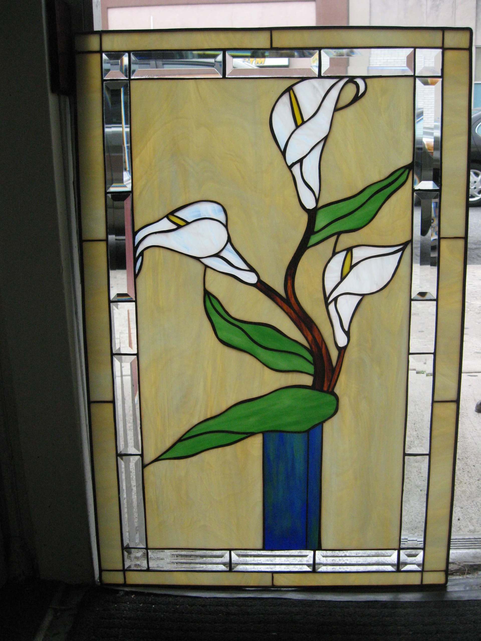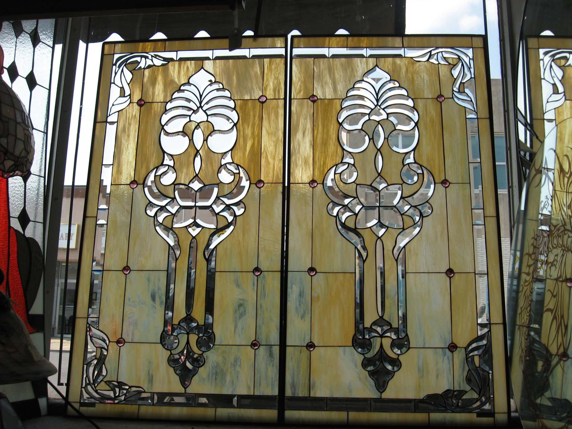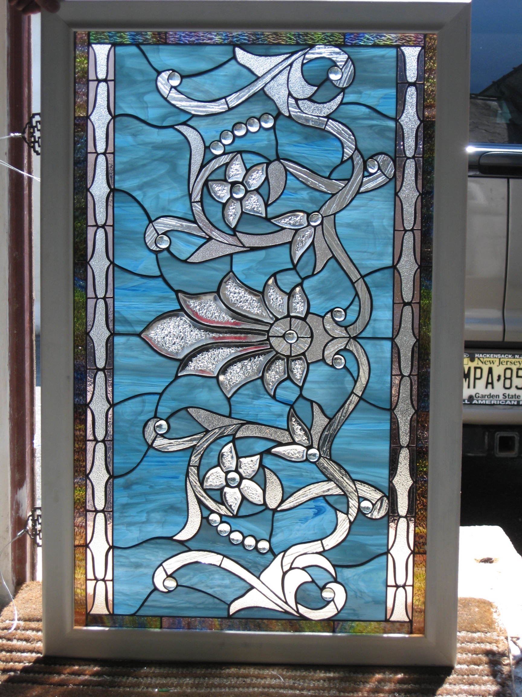 Pictured here are several examples of residential stained glass pieces that have been made by our studio. Each piece is especially custom designed for each individual customer. We have hundreds of designs in our library and we can re-create any of these or create a custom artwork based on your specifications.